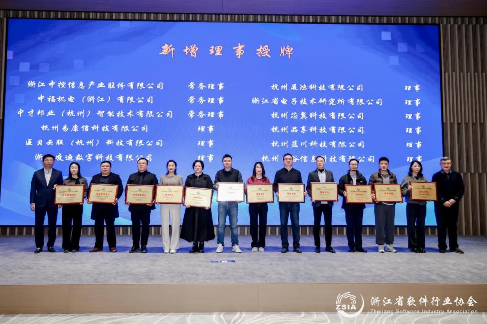 會(huì)議中,省軟協(xié)秘書(shū)長(zhǎng)王小號(hào)回顧了協(xié)會(huì)過(guò)去一年的工作和成績(jī),常務(wù)副秘書(shū)長(zhǎng)楊嵐作了財(cái)務(wù)工作報(bào)告。審議表決環(huán)節(jié)通過(guò)了會(huì)員申請(qǐng)、理事會(huì)成員變動(dòng)等議題。浙江工商大學(xué)教授琚春華作了《AI時(shí)代軟件業(yè)創(chuàng)新發(fā)展思考》專(zhuān)題報(bào)告,探討了A技術(shù)對(duì)軟件行業(yè)的影響和未來(lái)趨勢(shì)。 會(huì)議發(fā)布了《2024浙江省軟件企業(yè)核心競(jìng)爭(zhēng)力評(píng)價(jià)結(jié)果》,表彰了優(yōu)秀企業(yè),并舉行了頒獎(jiǎng)儀式,表彰“2024年長(zhǎng)三角百家品牌軟件企業(yè)”和“先進(jìn)工作者”。張呂崢和名譽(yù)理事長(zhǎng)蔡家楣共同為新任理事頒發(fā)牌匾。